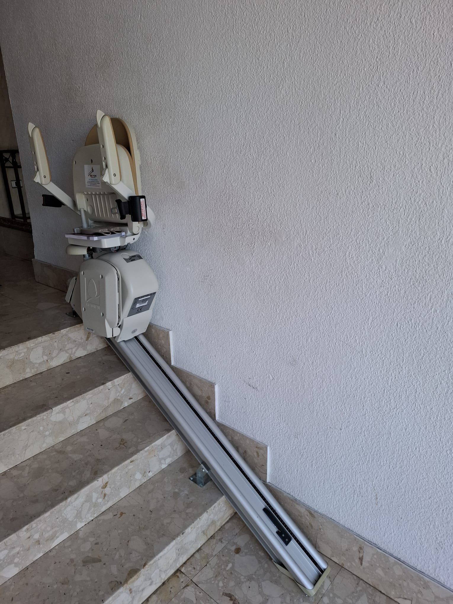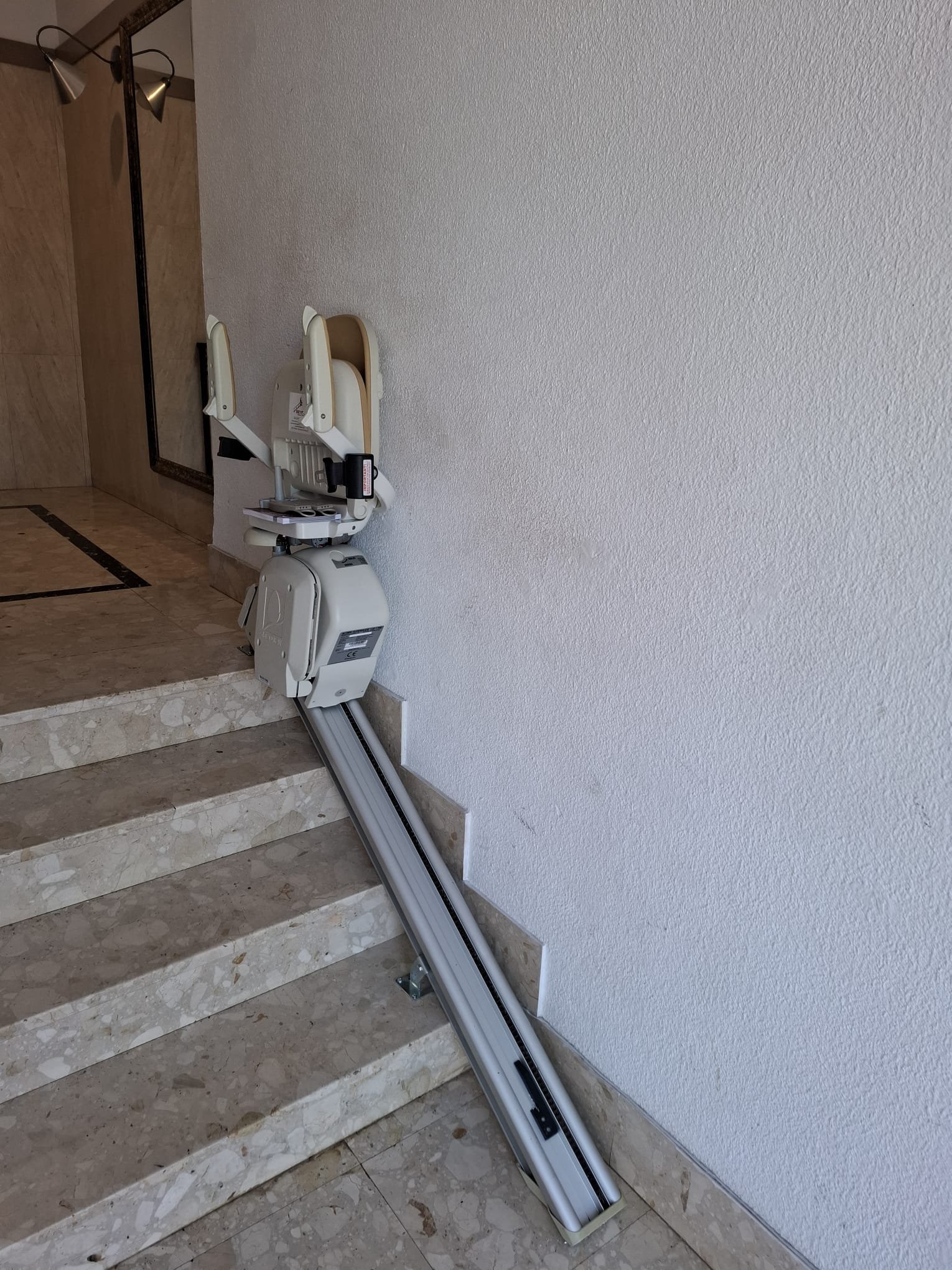 En esta ocasión hemos realizado la instalación de una silla salvaescaleras recta, con salida a la izquierda, en un edificio de apartamentos turísticos. El proyecto tenía como objetivo dar cumplimiento a la normativa de accesibilidad, garantizando que cualquier persona pueda acceder a las instalaciones sin dificultad. La intervención se completó en un solo día, gracias a nuestro equipo técnico especializado y a la disponibilidad inmediata de equipos en stock. Accesibilidad garantizada Con esta instalación, los apartamentos disponen ahora de una solución segura, práctica y totalmente adaptada, ofreciendo comodidad tanto a los huéspedes como a los propietarios, y cumpliendo con la legislación vigente.